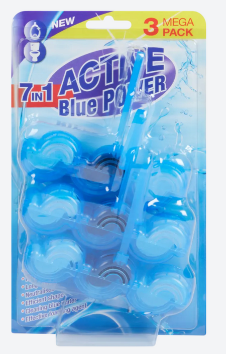 Zichtbaar fris toilet met blauwe of turquoise vloeistof