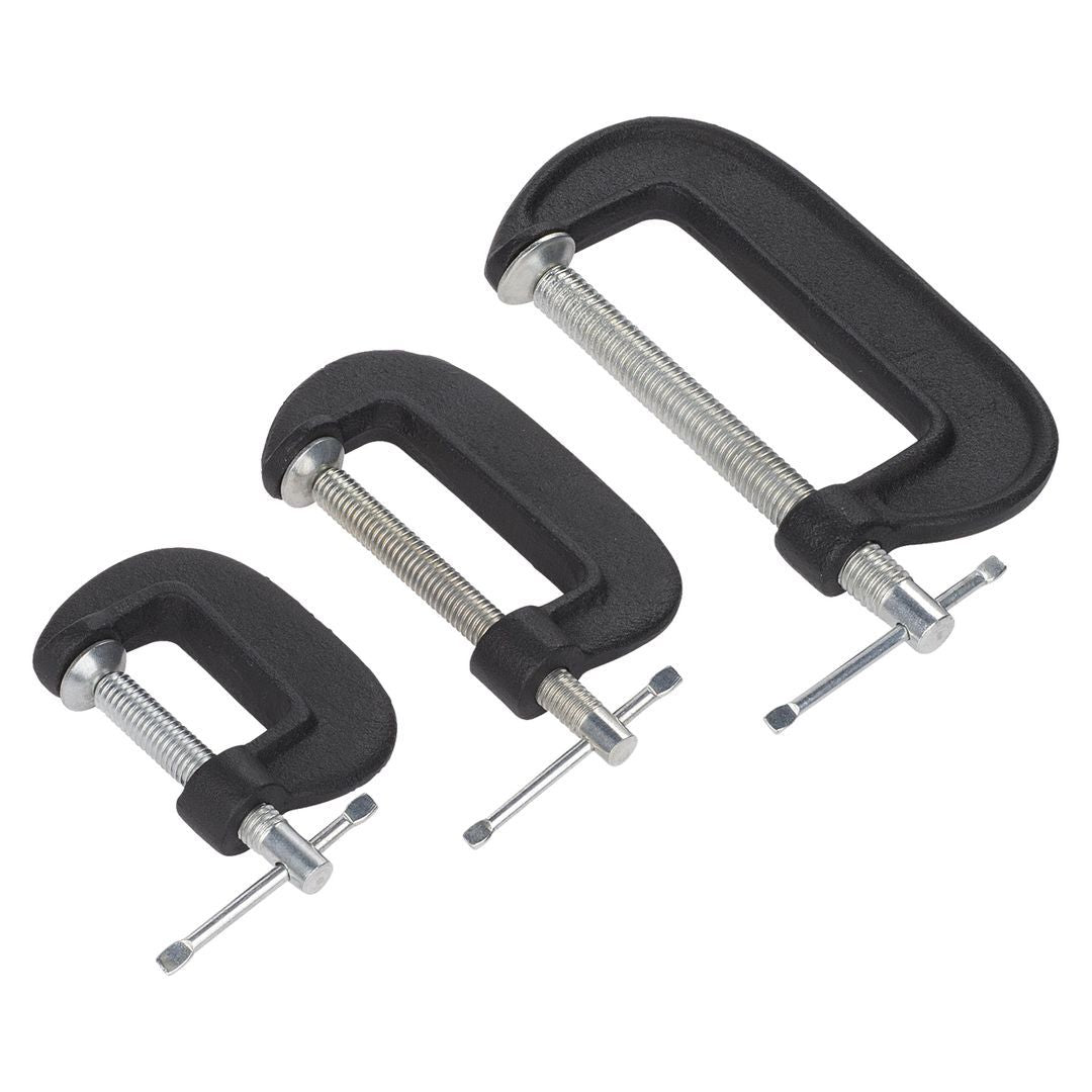 Deze set van 3 spanklemmen in de vorm van een G hebben elk een verschillende grootte en helpen je een werkstuk of materialen vast samen te houden,