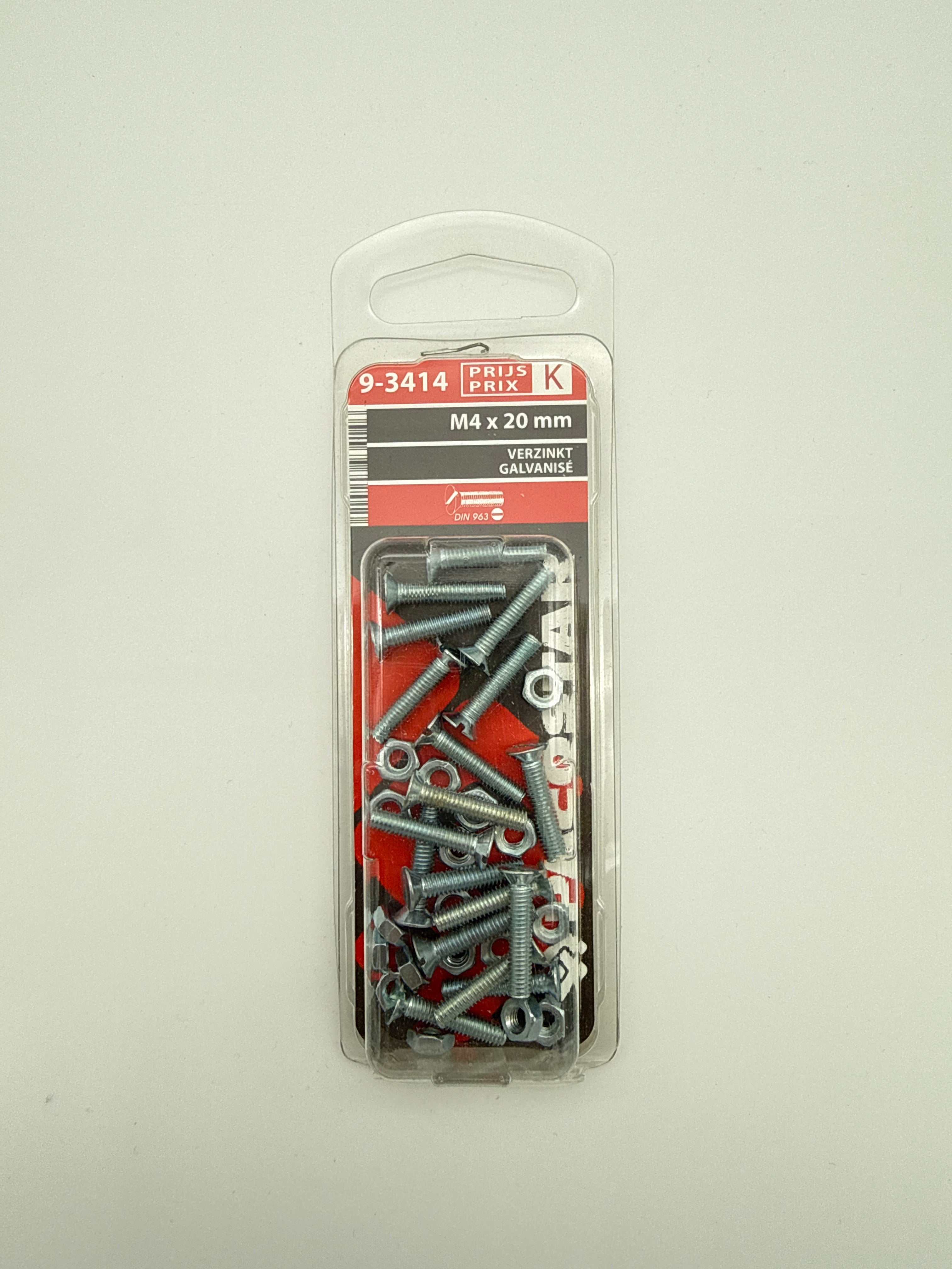 Metaalbouten platte kop + moer - M4 x 20 mm