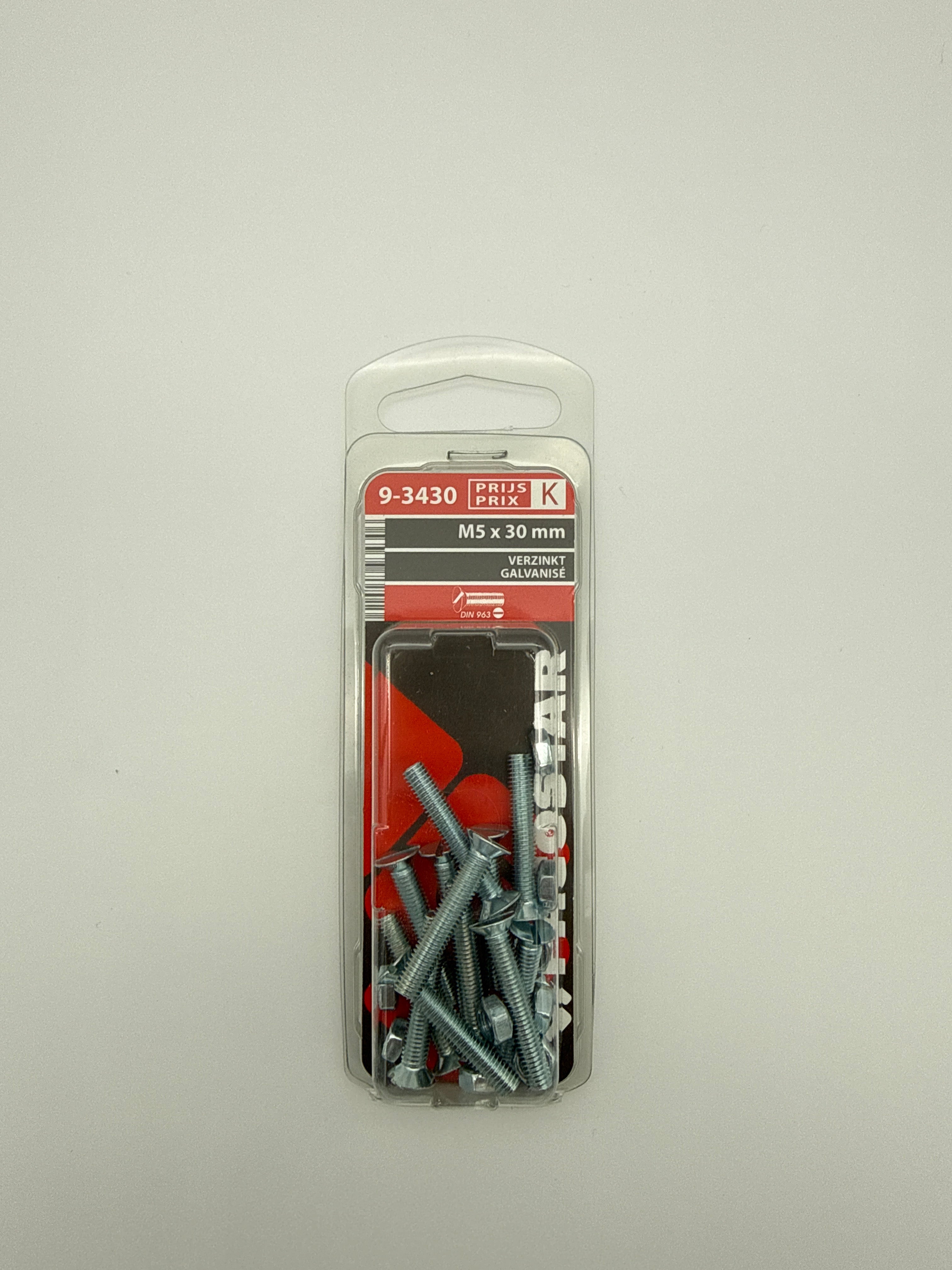 Metaalbouten platte kop + moer - M5 x 30 mm