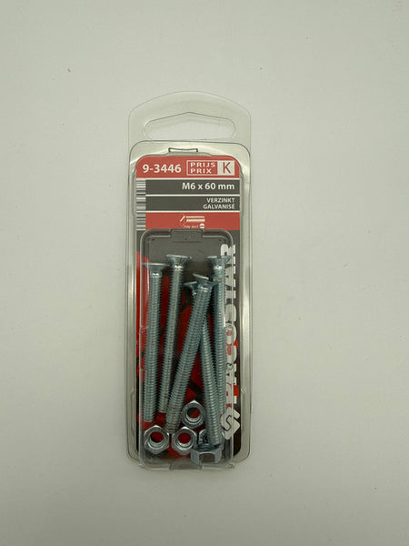 Metaalbouten platte kop + moer - M6 x 60 mm