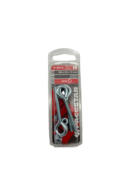 Oogbouten met moer, verzinkt - M6 x 50 x 10 mm